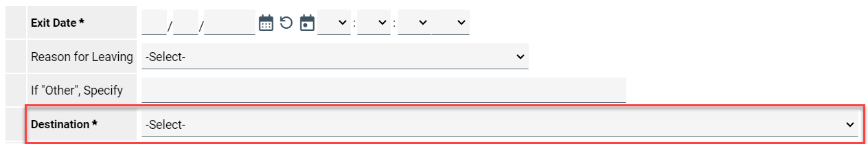 | Other | Any response of "Other" in Destination will not count in any HMIS-based reporting as a positive outcome. | x | x | |