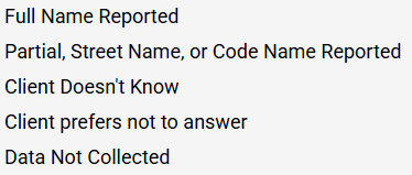 Staff Note (do not read aloud): If the client says they don’t know or prefers not to disclose, please select “Client doesn’t know” or “Client prefers not to answer” in the system. |