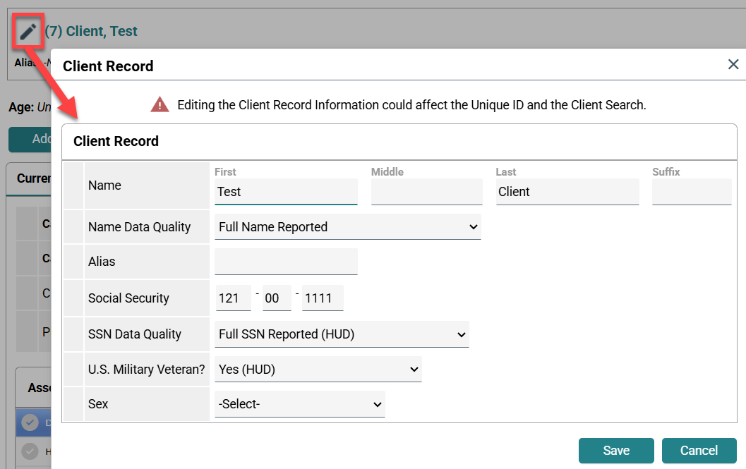 Search for client record