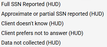 Choose an appropriate answer based on the caller's disclosure. If the caller does not have a SSN, select "Client Doesn't Know" Required. |