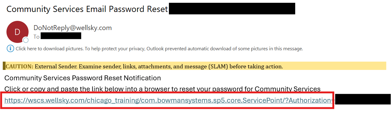 4. Click on a unique link provided to you in the email; the email is usually sent by 'DoNotReply@wellsky.com'