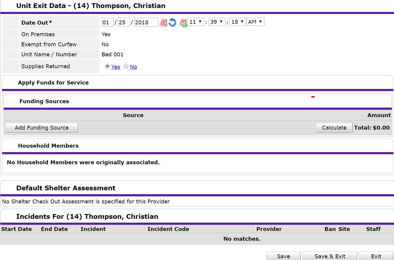 Doing so, will take you to the Unit Exit Data page.