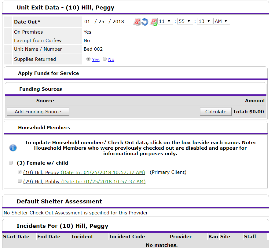 From here, you can backdate the client's exit date if necessary, and indicate whether the client has returned any borrowed supplies.