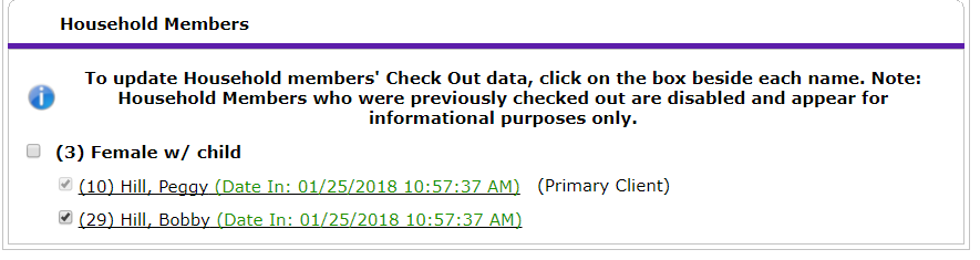However, one important step that is necessary for any program working with multi-person households is to check off the remaining households members. In the above image, only Peggy's name is checked off. In order to remove the entire household successfully, we need to check off Bobby's as well.