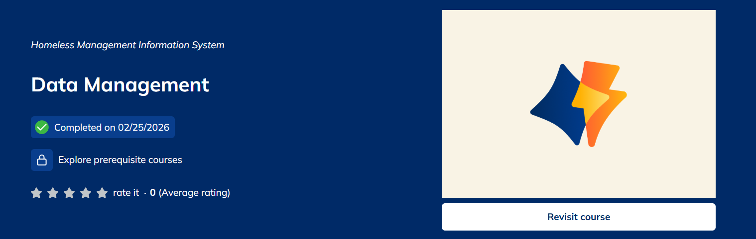 This is the prerequisite HMIS course on the Learning Management System (LMS), which means that all project-specific courses will be marked "Restricted" until this course is completed to 100%